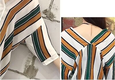 Vネック/ブラウス★ストライプ/ボーダー★シャツブラウス★レトロシャツ★重ね着に★トップス ★体型カバー